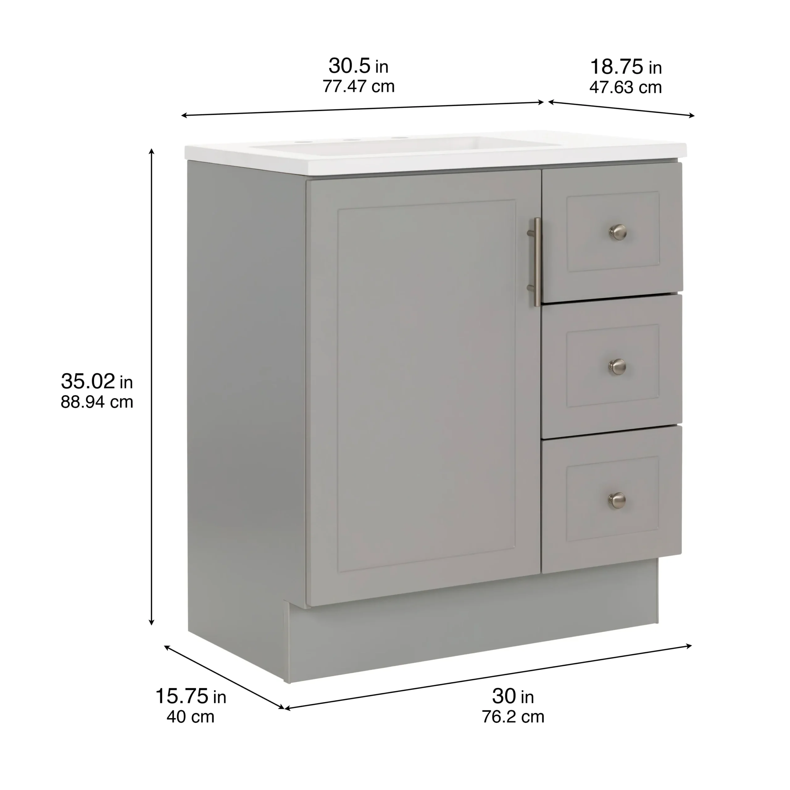 Project Source Davies 30-in Light Gray Single Sink Bathroom Vanity with White Cultured Marble Top