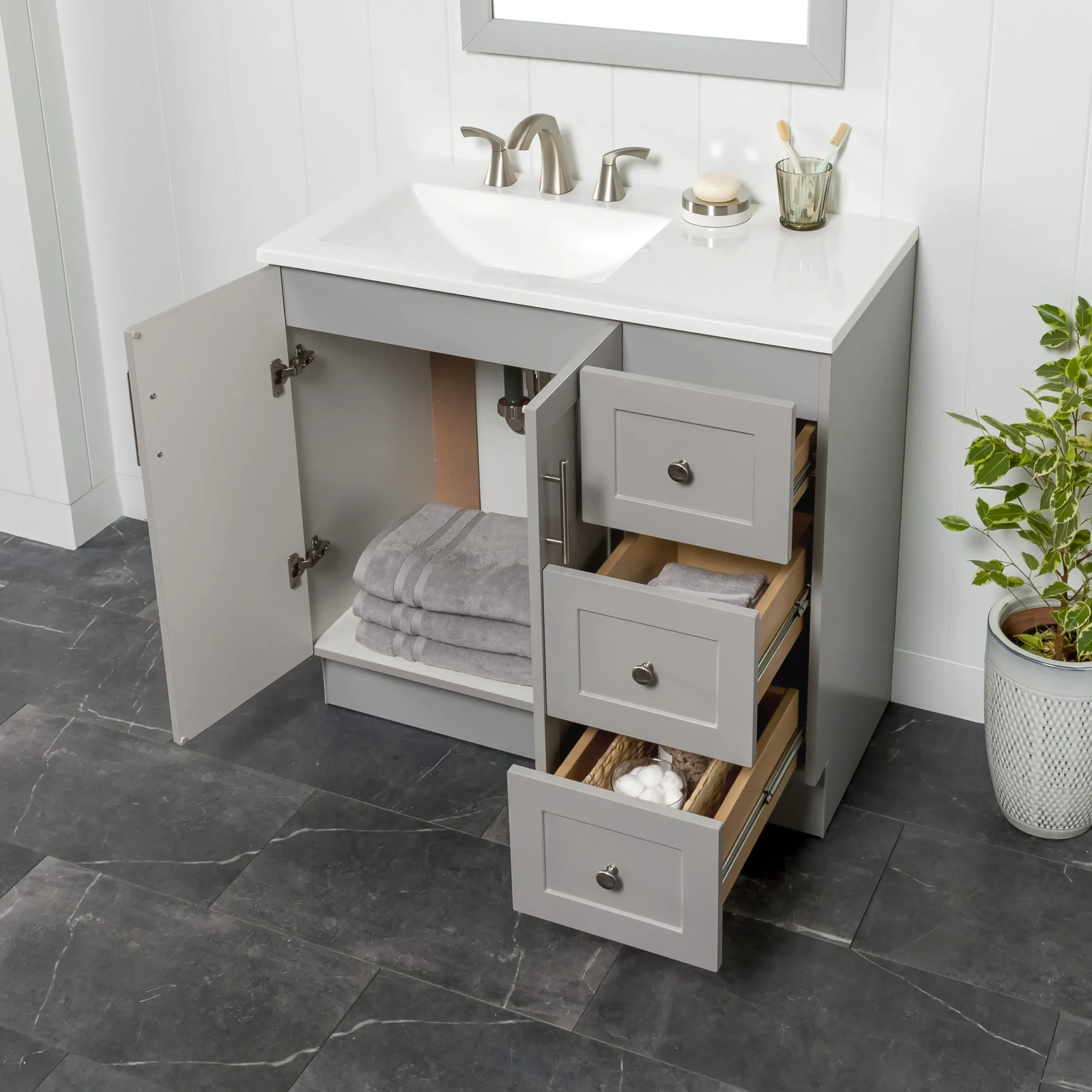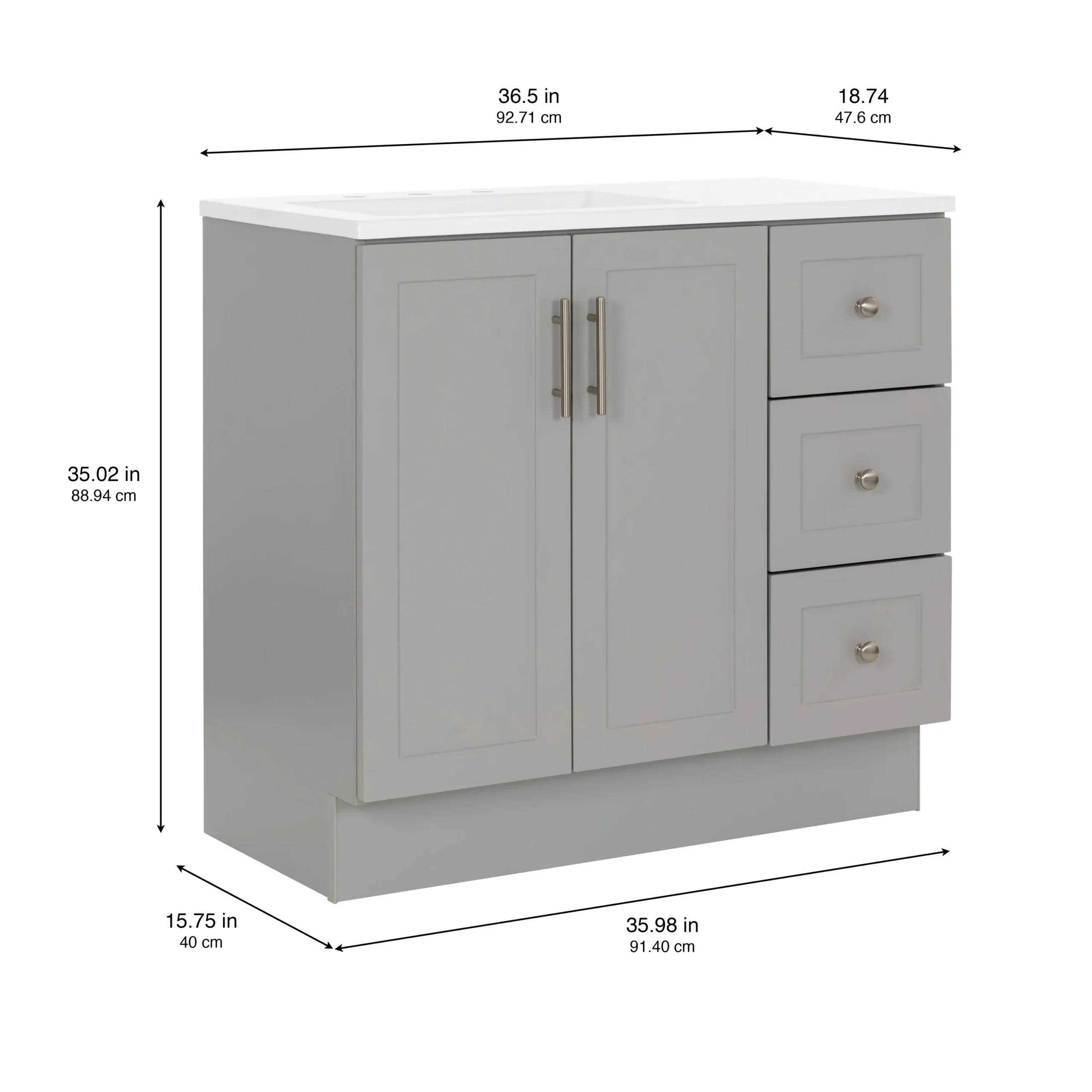 Project Source Davies 36-in Light Gray Single Sink Bathroom Vanity with White Cultured Marble Top