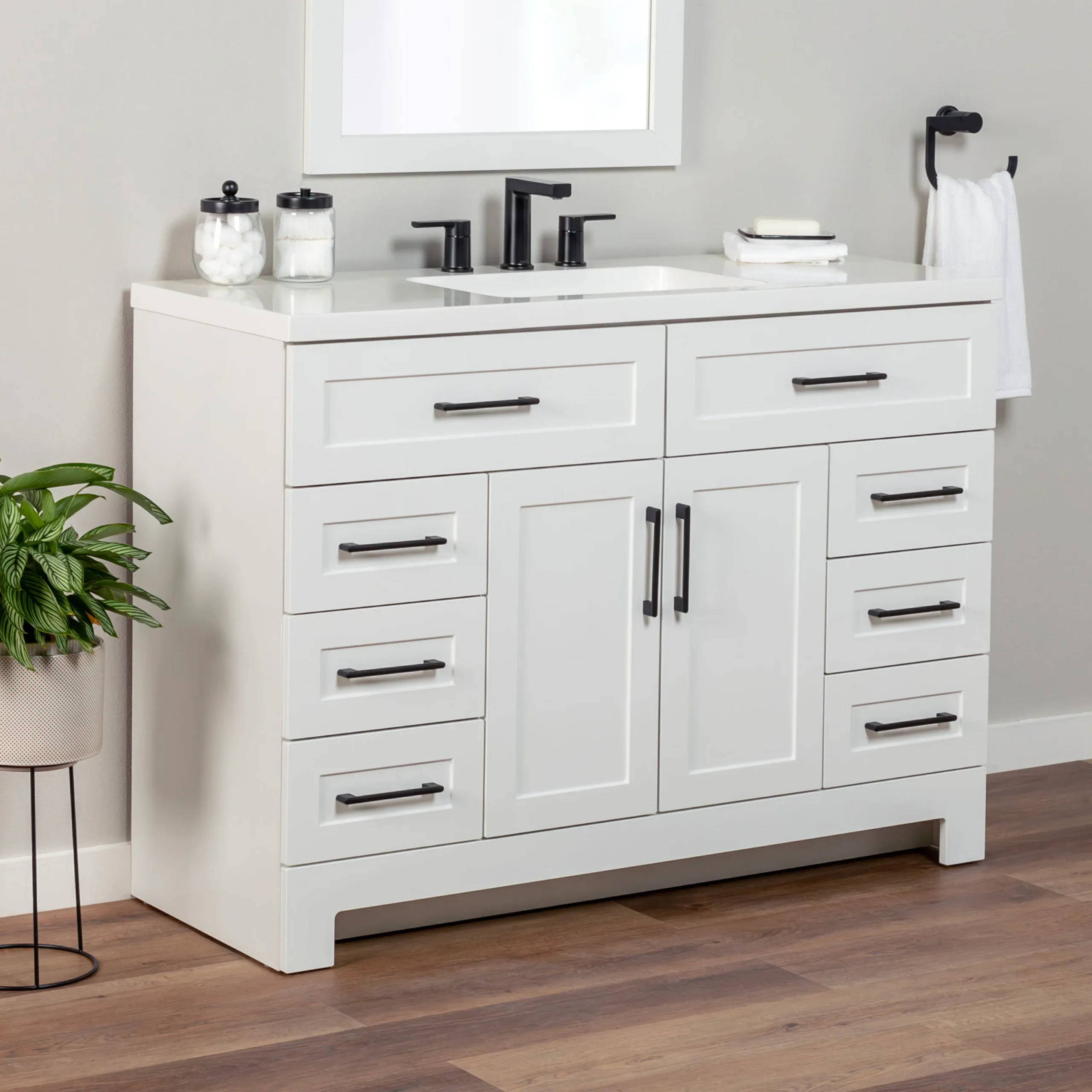 Style Selections Cauley 48-in True White Single Sink Bathroom Vanity with White Cultured Marble Top