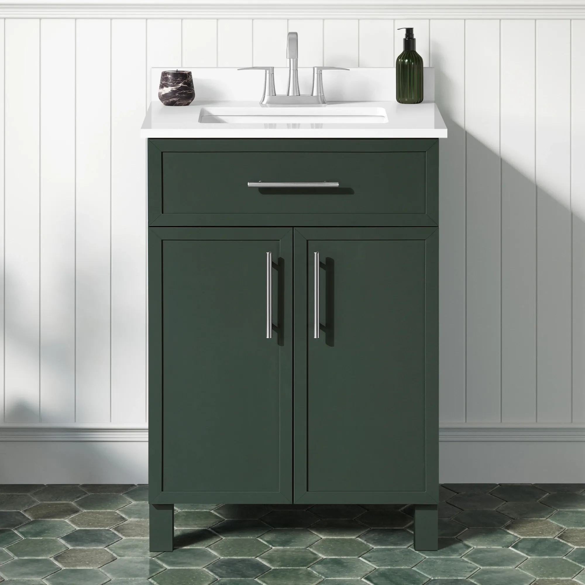 Style Selections Dolton 24-in Pine Green Undermount Single Sink Bathroom Vanity with White Engineered Marble Top