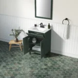 Discover contemporary design and exceptional utility with the Style Selections Dolton Bathroom Vanity collection. This freestanding cabinet features a minimalist aesthetic and arrives complete with a matching mirror, making it a highly practical choice for your bathroom renovation. Topped with a sleek white engineered marble countertop and an integrated ceramic sink, the vanity is designed for both durability and easy maintenance. Available in an array of versatile finishes including Light Natural Oak, True White, and Pine Green. Choose the perfect fit for your layout from multiple size options ranging from a compact 18 inch single sink to an expansive 60 inch double vanity. Designed to maximize space, the Dolton features soft close doors, an adjustable interior shelf, and a convenient tilt down drawer. The collection also includes two sets of hardware in matte black and brushed nickel, allowing you to customize the look to match your exact style. Browse our catalog to explore how this vanity and mirror combination can seamlessly upgrade your home.