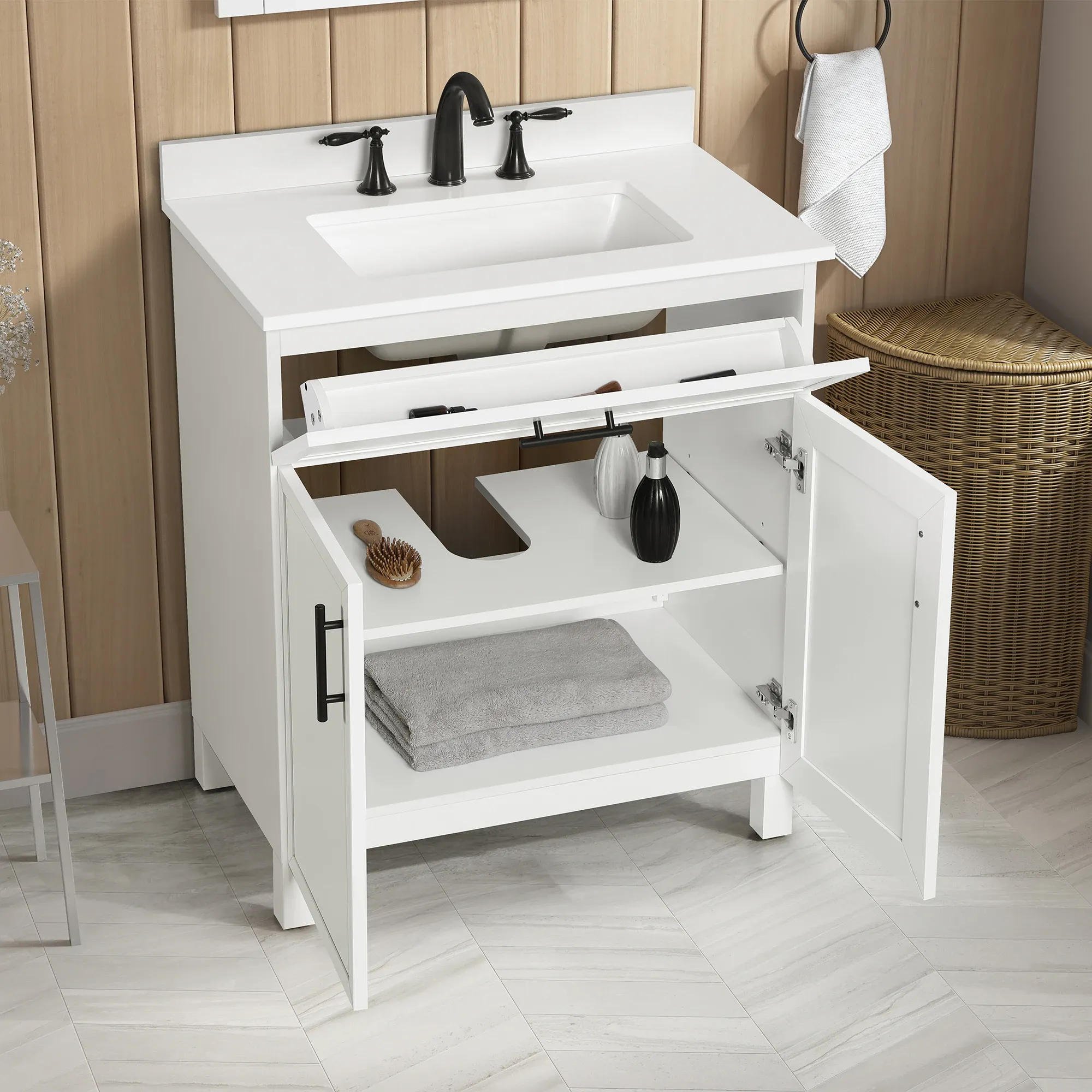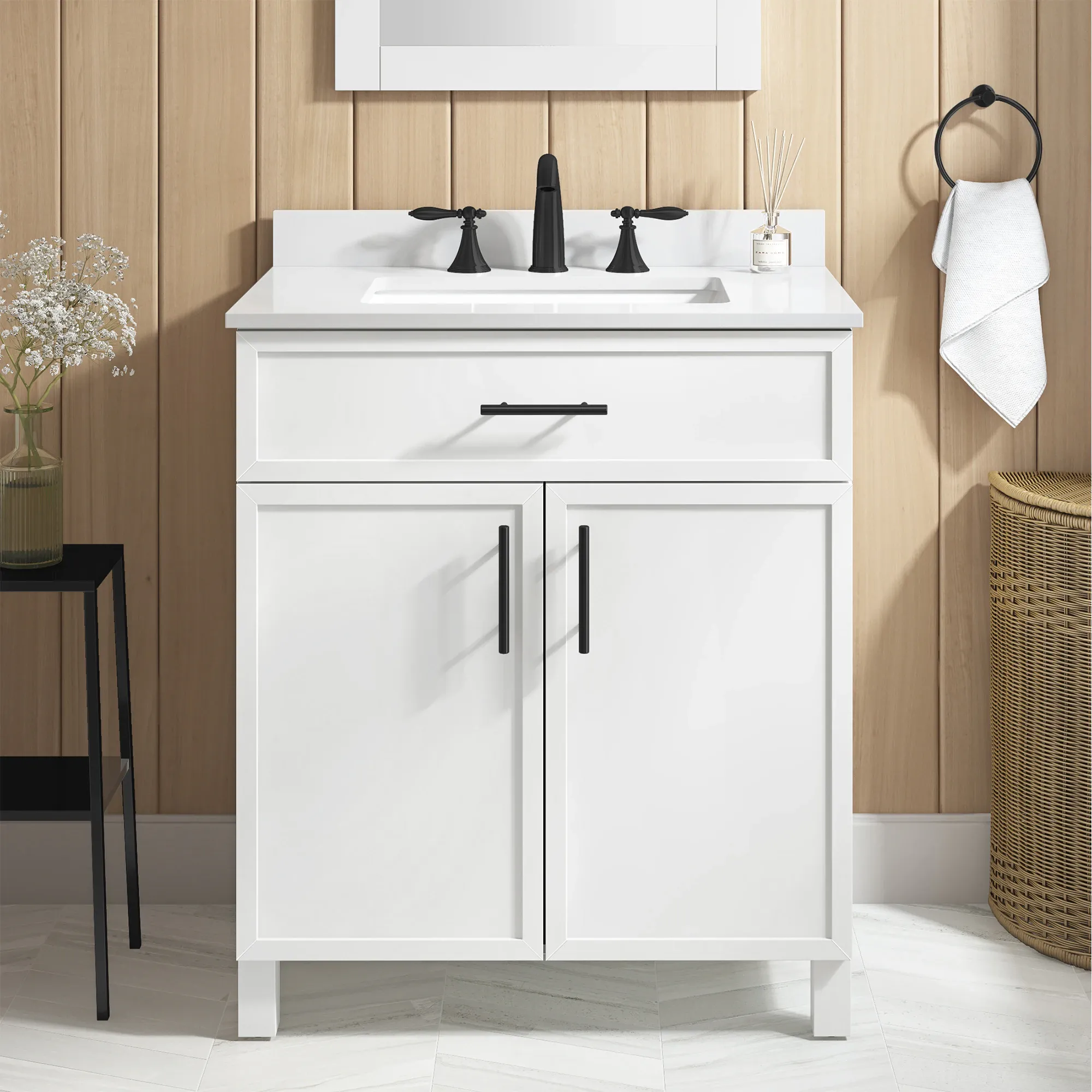 Style Selections Dolton 30-in True White Undermount Single Sink Bathroom Vanity with White Engineered Stone Top