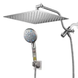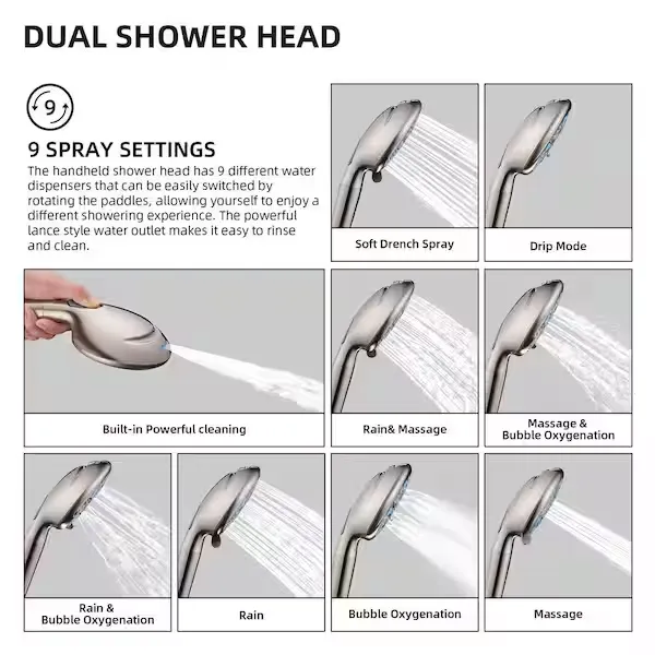 Transform your bathroom routine with the Zalerock Wall Mounted Dual Shower Head System, designed to bring a luxurious and immersive experience to your daily wash. This impressive kit features a large 12 inch square rainfall shower head that provides full body coverage, making you feel like you are standing in a gentle rainstorm. Paired with a versatile handheld shower wand, it offers nine distinct spray settings—including a powerful top jet mode—to easily customize your clean. The handheld wand is equipped with an innovative filtration attachment that purifies your water, protecting your hair and skin from harsh minerals. Switching between the overhead rain shower and the wand is completely effortless thanks to the smoothly rotating 3 way diverter valve. Designed for a highly adjustable and easy DIY installation, it includes an S shaped extension arm so you can set the perfect height and angle, while the adhesive patch makes mounting the handheld wand incredibly simple without the need to replace your entire shower system. Browse our catalog to explore how this high performance fixture can affordably upgrade your space.