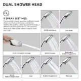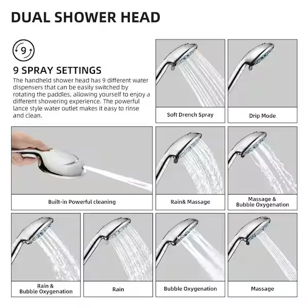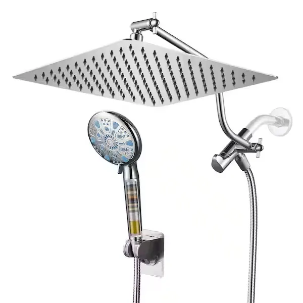 Transform your bathroom routine with the Zalerock Wall Mounted Dual Shower Head System, designed to bring a luxurious and immersive experience to your daily wash. This impressive kit features a large 12 inch square rainfall shower head that provides full body coverage, making you feel like you are standing in a gentle rainstorm. Paired with a versatile handheld shower wand, it offers nine distinct spray settings—including a powerful top jet mode—to easily customize your clean. The handheld wand is equipped with an innovative filtration attachment that purifies your water, protecting your hair and skin from harsh minerals. Switching between the overhead rain shower and the wand is completely effortless thanks to the smoothly rotating 3 way diverter valve. Designed for a highly adjustable and easy DIY installation, it includes an S shaped extension arm so you can set the perfect height and angle, while the adhesive patch makes mounting the handheld wand incredibly simple without the need to replace your entire shower system. Browse our catalog to explore how this high performance fixture can affordably upgrade your space.